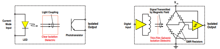 光耦合器没有栅极驱动变压器的脉冲宽度限制,并且往往更小。对于EMI来说,他们也有“安静”的优势。另一方面,光耦相对较慢,导致驱动波形失真和整流不精确。它们还具有相对较低的瞬态抗扰度,使其易受寄生开关的影响。最后,随着时间的推移,光耦合器往往会漂移并最终失效,因为它们的LED会退化。有限的使用寿命尤其成问题。尽管存在局限性,但由于下一代数字隔离器不太适合模拟信号,光耦合器仍然流行于隔离模拟误差反馈。